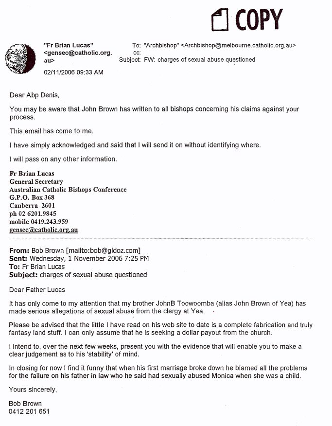 Let me start this very short email exchange (emphasis here appears to show an intent to what?) to give you my reasons. It is in some small degree (agrees there is a possibility - though only small ) possible that you may have (your emphasis) suffered sexually from the clergy. I am not blind or stupid enough to know it did and still does happen however I find 95% of content on your site regarding you as a complete fabrication and to be honest this is what has pissed my off (Is it your perception of this as a fabrication or it it simply because it is me?) .
